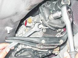 6. Отвернув три гайки болтов крепления эластичной муфты к фланцу переднего карданного вала, разъединяем детали. Установка эластичной муфты 1. Устанавливаем новую муфту в обратной последовательности. При этом обязательно следим за тем, чтобы выступы на муфте вошли в соответствующие пазы фланцев переднего карданного вала и вторичного вала коробки передач.