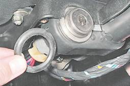 4. Снимаем с верхнего кожуха и замка зажигания уплотнительное кольцо.