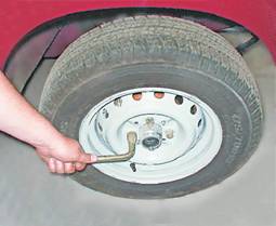 Предупреждение! Если автомобиль стоит на рыхлом грунте, подложите под домкрат опору (например, доску подходящего размера). 5. Отворачиваем болты крепления колеса, снимаем его и переставляем декоративный колпачок на устанавливаемое колесо. Установка 1. Устанавливаем запасное колесо и от руки заворачиваем болты его крепления. "Баллонным" ключом равномерно, "крест - накрест" подтягиваем болты, удерживая колесо от вращения. 2. Опускаем автомобиль, снимаем домкрат и окончательно крест-накрест затягиваем болты крепления колеса моментом 58,8-72,0 Н.м. 3. Проверяем давление воздуха в шине и при необходимости доводим его до нормы (см. "Шины - проверка давления"). 4. Устанавливаем снятое колесо на место запасного и крепим его. 5. Убираем в багажное отделение домкрат, противооткатные упоры и "баллонный" ключ. |
