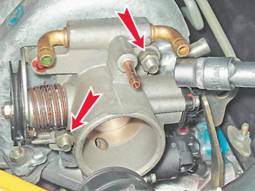 10. Торцовым ключом на 13 мм отворачиваем две гайки крепления корпуса дроссельной заслонки.