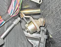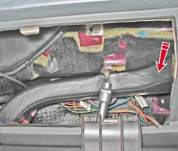 10. Снимаем кран, вынимая его патрубок из уплотнителя, находящегося в перегородке моторного отсека (см. "Радиатор отопителя - замена"). Место соединения фланцев крана и радиатора уплотнено резиновой прокладкой. При этом из радиатора отопления может вытечь небольшое количество охлаждающей жидкости, для ее сбора надо подложить ветошь.
