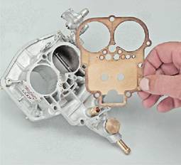 14. Проверяем состояние диафрагмы, разрывы и трещины не допускаются. При необходимости заменяем диафрагму. Установка 1. Перед сборкой и установкой крышки промываем все ее детали очистителем карбюратора. 2. Резиновой грушей отбираем топливо из поплавковой камеры корпуса карбюратора. Промываем очистителем карбюратора внутреннюю поверхность корпуса карбюратора и диффузоры камер. Вывернув топливные и воздушные жиклеры, а также распылитель ускорительного насоса (см. ниже, "Корпус карбюратора - разборка"), продуваем каналы корпуса сжатым воздухом.