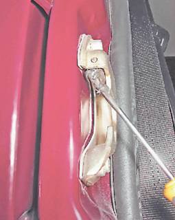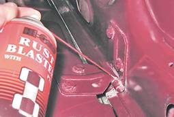 3. Аналогично обрабатываем петли дверей и крышки багажника. 4. Проникающей смазкой обрабатываем скважины личинок замков передних дверей и крышки багажника.