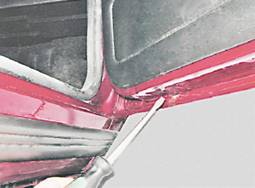 Кузов - прочистка дренажных отверстий и смазка трущихся деталейПрочистку дренажных отверстий и смазку трущихся деталей необходимо выполнять согласно периодичности технического обслуживания через каждые 10000 км. Для выполнения работы потребуется тонкая шлицевая отвертка или отрезок проволоки диаметром 1-1,5 мм. Прочистку дренажных отверстий в порогах удобнее выполнять на смотровой яме или эстакаде. Последовательность выполнения 1. Подготавливаем автомобиль к выполнению операций (см. "Подготовка автомобиля к ТО и ремонту"). 2. Открыв капот, обрабатываем петли проникающей смазкой.
