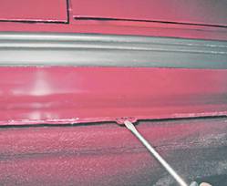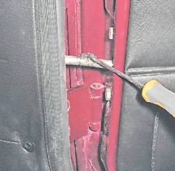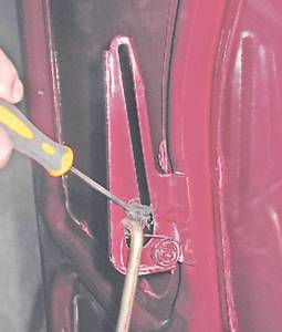 Примечание Для удаления влаги из внутренних полостей в нижней части передних дверей выполнено по три дренажных отверстия, в задних дверях - по два. В порогах выполнено по три дренажных отверстия. 5. Прочищаем дренажные отверстия в передних и задних дверях.