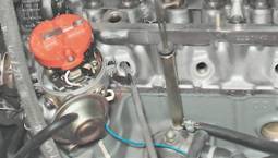 Маслоотражательные колпачки газораспределительного механизма - заменаМаслоотражательные колпачки клапанов заменяем при появлении дыма голубого цвета из выхлопной трубы особенно при торможении двигателем. Для работы потребуются рассухариватель, инерционный съемник, динамометрический ключ и оловянный пруток. Снятие 1. Подготавливаем автомобиль к выполнению операций (см. "Подготовка автомобиля к ТО и ремонту"). 2. Выворачиваем свечи зажигания (см. "Свечи зажигания - проверка состояния и замена"). Внимание! При выполнении следующей операции (после снятия корпуса распределительного вала) рекомендуется пометить расположение рычагов привода клапанов. 3. Снимаем корпус в сборе с распределительным валом, рычаги приводов клапанов и пружины (см. "Распределительный вал и рычаги клапанов - замена"). При снятии распределительного вала поршни 1-го и 4-го цилиндров были установлены в положение ВМТ, что позволит исключить падение клапана в цилиндр после снятия сухарей. В этом положении заменяем колпачки у клапанов 1-го и 4-го цилиндров. 4. Устанавливаем через свечное отверстие между поршнем и тарелкой клапана пруток оловянного припоя диаметром около 8 мм.