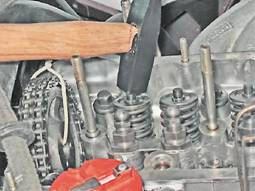 6. Сжав рассухаривателем пружины клапана, извлекаем из его проточки два сухаря.