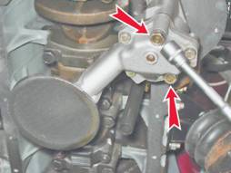 3. Торцовым ключом на 13 мм отворачиваем два болта крепления масляного насоса. Болты крепления насоса имеют разную длину.