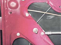 2. Снимаем прижимную пластину троса (см. выше, "Стекла задней двери - снятие и установка").