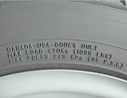 Максимальная нагрузка на шину дублируется в расшифрованном виде вместе с указанием максимально допустимого давления воздуха в шине.