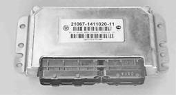 Электронный блок управления (ЭБУ) По сути, ЭБУ - специализированный миникомпьютер, в котором установлена программа управления двигателем, а датчики и исполнительные устройства - периферийное оборудование этого компьютера. Блок получает и анализирует сигналы датчиков. На основе полученных данных блок рассчитывает управляющие команды и выдает их на исполнительные устройства. В блоке имеются два типа памяти: постоянное запоминающее устройство (ПЗУ) и оперативное запоминающее устройство (ОЗУ). ПЗУ - память энергонезависимая (то есть информация в памяти сохраняется при отключении питания). В ПЗУ хранится программа вычислений и необходимые для расчета данные (параметры двигателя, передаточные отношения трансмиссии и другие характеристики). В процессе работы ЭБУ контролирует исправность всех элементов и цепей системы управления двигателем. Обнаружив неисправность, ЭБУ переводит систему управления двигателем на резервный режим работы и включает контрольную лампу неисправности двигателя. Двигатель при этом сможет продолжить работу (кроме случая неисправности датчика положения коленчатого вала, см. ниже), что позволяет доехать до места ремонта своим ходом. Коды обнаруженных неисправностей ЭБУ записывает в оперативную память (ОЗУ). Там же хранится оперативная информация, которую микропроцессор ЭБУ использует при расчетах. При отключении аккумуляторной батареи от бортовой сети автомобиля вся информация, хранящаяся в ОЗУ, будет утеряна. Электронный блок управления установлен в салоне под вещевым ящиком на кронштейне, прикрепленном к перегородке моторного отсека. На автомобиле установлена система управления двигателем на базе ЭБУ M7.9.7 под нормы токсичности ЕВРО II. На автомобиле с двигателем 21067 установлен блок управления 21067-1411020-11/12, а с двигателем 2104 - 2104-1411020-10. Примечание На части выпущенных автомобилей установлены ЭБУ M1.5.4N и Январь-5.1.3 (см. "Электрические схемы"). Датчик положения коленчатого вала (ДПКВ) предназначен для формирования сигналов, по которым ЭБУ синхронизирует свою работу с тактами рабочего процесса двигателя. Поэтому часто этот датчик называют датчиком синхронизации. Датчик установлен в отверстии кронштейна крышки привода распределительного вала.