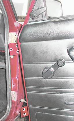 1. Установку двери выполняем в обратной последовательности, ориентируясь на не закрашенные участки передней стойки кузова.