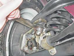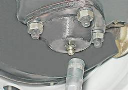 2. При обнаружении люфта верхнюю шаровую опору необходимо заменить (см. "Шаровые опоры - замена"). Проверка состояния нижней шаровой опоры 1. Очищаем нижнюю часть шаровой опоры от грязи и ключом на 7 мм отворачиваем пробку.