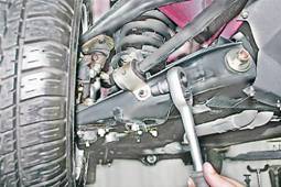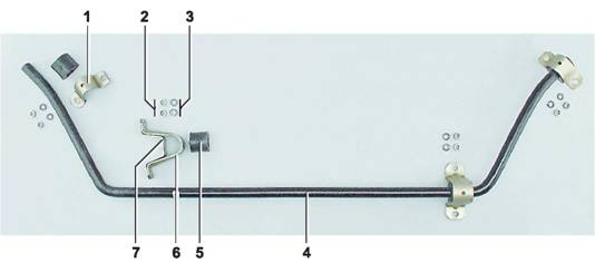 Подушки и штанга стабилизатора поперечной устойчивости - заменаСтабилизатор поперечной устойчивости снимаем при деформации штанги или замене всех резиновых подушек кронштейнов ее крепления. Резиновые подушки обойм крепления штанги стабилизатора к рычагам заменяем, не снимая самой штанги.