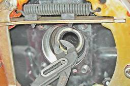 8. Раздвижными пассатижами или другим подходящим инструментом извлекаем сальник полуоси из отверстия фланца балки.
