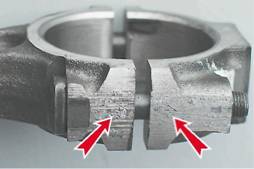 Поршни - заменаДля выполнения работы потребуются оправки для снятия поршневого пальца и обжатия колец. Снятие 1. Устанавливаем автомобиль на смотровую яму или эстакаду (см. "Подготовка автомобиля к ТО и ремонту"). 2. Снимаем с двигателя головку блока цилиндров (см. с. 50 (51), "Прокладка головки блока цилиндров карбюраторного (впрыскового) двигателя - замена"). 3. Снимаем поддон картера двигателя (см. "Поддон картера двигателя - снятие и установка"). 4. Отворачиваем гайки крышек шатунов (не снимая коленчатого вала) и выталкиваем поршень с шатуном из блока цилиндров (см. "Коленчатый вал - снятие и установка"). 5. Вынимаем из крышки шатуна сталеалюминиевый вкладыш. На шатуне и крышке клеймением нанесен номер цилиндра, в который они устанавливаются.