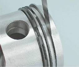 2. Подбираем палец к поршню. Палец установлен в верхней головке шатуна с натягом и свободно вращается в бобышках цилиндра. По наружному диаметру пальцы разбиты на три категории через 0,004 мм. Категории указываются цветной меткой на торце пальца: синяя - первая категория, зеленая - вторая, красная - третья. Сопряжение поршневого пальца и поршня проверяем, вставляя поршневой палец (смазанный моторным маслом) в отверстия бобышек поршня. Поршневой палец должен устанавливаться от простого нажатия большого пальца руки и не выпадать при вертикальном положении пальца. 3. Проверяем зазор между канавками и поршневыми кольцами. Зазоры должны соответствовать величинам, приведенным в таблице 8.1.3 (см. ниже). Увеличенный зазор приводит к быстрому износу (разбиванию) канавок поршня.