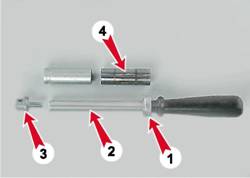 Сборка шатунно-поршневой группы 1. Надеваем палец 4 на оправку 2, не затягивая сильно упор 3.