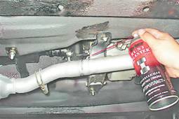 3. Наносим на место соединения приемной трубы и дополнительного глушителя проникающую смазку с преобразователем ржавчины и даем соединению "отмокнуть".
