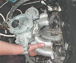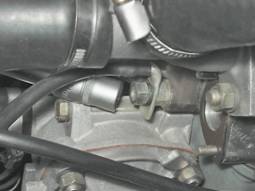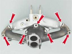 Точки креплений впускного трубопровода 14. Снимаем впускной трубопровод со шпилек головки блока цилиндров и отводим его в сторону.