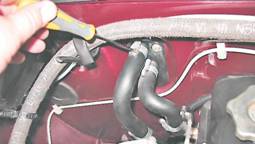 Радиатор отопителя - заменаДля выполнения работы потребуются две новые резиновые прокладки для крана отопителя и патрубка радиатора, два червячных хомута диаметром 16-23 мм и охлаждающая жидкость. Снятие 1. Подготавливаем автомобиль к выполнению операций (см. "Подготовка автомобиля к ТО и ремонту"). Предупреждение! Перед выполнением следующих операций рекомендуется под патрубки подложить ветошь. 2. В моторном отсеке отверткой ослабляем затяжку хомутов крепления шлангов подвода и отвода охлаждающей жидкости.