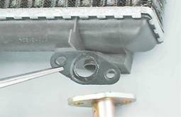 10. Снимаем патрубок. Место соединения фланцев патрубка и радиатора уплотнено резиновой прокладкой.