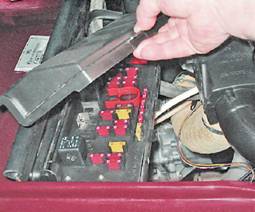 3. Для получения доступа к предохранителям и реле открываем крышку монтажного блока, преодолевая сопротивление фиксаторов.