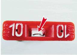 4. Неисправный предохранитель определяем по перегоревшей нити.