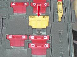 4. Пинцетом, расположенным в монтажном блоке, зацепляем перегоревший предохранитель и извлекаем его из контактного разъема.