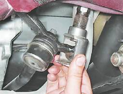 7. Съемником выпрессовываем пальцы наконечников и снимаем боковые тяги.