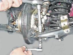 2. Установка шаровых опор выполняется в обратной последовательности. 3. Проверяем углы установки передних колес (см. "Углы установки колес - регулировка"). |