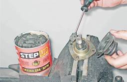 14. Снимаем нижнюю шаровую опору вместе с чехлом. Установка 1. Перед установкой шаровых опор проверяем наличие смазки в чехле. При необходимости наносим смазку на шаровой палец и закладываем ее под защитный чехол.
