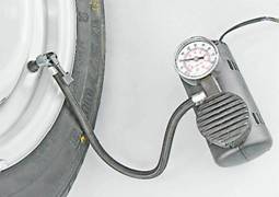 При подкачке контролируем давление по показаниям манометра насоса или компрессора. Предупреждение! Манометр при накачивании, как правило, показывает давление не в шине, а в подающем воздух шланге. Чтобы определить истинное давление в шине, необходимо прервать процесс накачивания. 5. Наворачиваем на вентиль защитный колпачок. 6. Аналогично проверяем давление воздуха в остальных шинах автомобиля. |