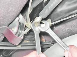 4. Ключом на 13 мм ослабляем контргайку, удерживая регулировочную гайку ключом того же размера.