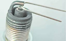 6. Круглым щупом проверяем зазор между электродами. Если зазор не соответствует норме, устанавливаем его согласно табл. 13.3, подгибая или отгибая боковой электрод.