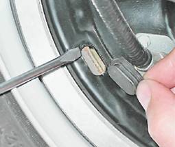 Если толщина рабочей поверхности диска стала меньше 9,5 мм - его необходимо заменить (см. "Тормозной механизм переднего колеса - разборка"). 4. Проверяем состояние тормозных механизмов задних колес. Сняв заглушку на тормозном щите, визуально оцениваем толщину фрикционной накладки тормозной колодки. При толщине накладки менее 1,5 мм - заменяем колодки, причем правого и левого тормозных механизмов (см. "Колодки тормозных механизмов задних колес - замена").