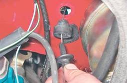 8. Извлекаем резиновую втулку из отверстия в перегородке моторного отсека и вынимаем трос.