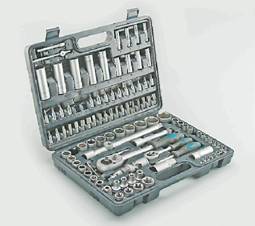 Универсальный инструмент1. Набор торцовых ключей со сменными головками. В набор обязательно должен входить комплект сменных головок размерностью от 10 до 32 мм, под соединительный квадрат 1/2'' (0,5 дюйма). Желательно, чтобы в этом комплекте был весь ряд рабочих профилей метрического размера. Также желательно, чтобы был второй комплект головок размерностью от 6 до 14 мм под меньший посадочный размер (1/4'') и дополнительный набор глубоких головок на 8, 10, 12 и 13 мм, предназначенных для отворачивания гаек с длинных шпилек. Очень удобно работать, если в наборе есть воротки с храповым механизмом (трещотки). Они позволяют быстро отворачивать и заворачивать крепежные детали. Предупреждение! Во избежание повреждения храпового механизма не используйте трещотки для ослабления и окончательной затяжки силовых крепежных элементов. Поскольку в автомобиле используются болты TORX, а также болты с внутренним шестигранником, в наборе следует иметь комплекты соответствующих головок и насадок, а также насадки с рабочим профилем под крестовые и шлицевые отвертки.