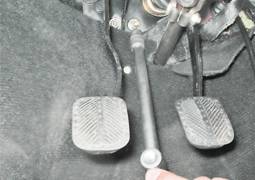 5. Сняв штифт, отсоединяем педаль от толкателя усилителя.