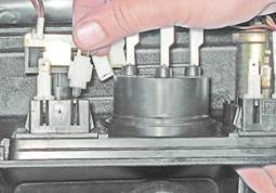 4. Отсоединяем от выводов патрона лампы колодки проводов.