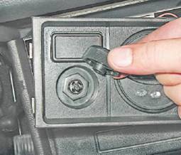 3. Тонкой шлицевой отверткой поддеваем вкладыш и, освободив фиксаторы, вынимаем его из отверстия панели радиоприемника.