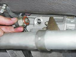 2. Снимаем выключатель. Соединение выключателя с коробкой передач уплотнено медной шайбой.