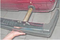 12. Выводя трубы бампера из уплотнителей в кузове, снимаем бампер.