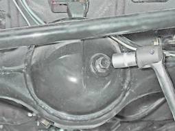 Задний мост - проверка уровня и замена маслаДля выполнения работы потребуется емкость для слива масла объемом не менее 1,5 л. Проверка уровня масла 1. Устанавливаем автомобиль на смотровую яму или эстакаду (см. "Подготовка автомобиля к ТО и ремонту"). 2. Стальной щеткой или ветошью очищаем от грязи пробки заливного и сливного отверстий, а также поверхность балки около пробок. 3. Ключом на 17 мм (лучше торцовым) отворачиваем пробку заливного отверстия.