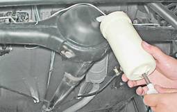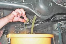 Пробка сливного отверстия снабжена магнитом, который притягивает к себе продукты износа деталей редуктора. 5. Очищаем пробку и устанавливаем ее на место. Примечание Если слитое масло темное и в нем явно заметны металлические частицы, редуктор рекомендуется промыть. Для этого заливаем в мост приблизительно литр масла с низкой вязкостью (например, веретенное). Вывесив одно из задних колес (см. "Колесо - замена"), запускаем двигатель и включаем первую передачу. Через пять минут выключаем двигатель, сливаем масло, снова очищаем и заворачиваем пробку сливного отверстия. 6. Заливаем в мост до уровня заливного отверстия свежее трансмиссионное масло и заворачиваем пробку. 7. Очищаем сапун снаружи щеткой или ветошью. Несколько раз поворачиваем колпачок сапуна для прочистки его канала.