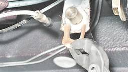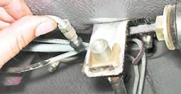 4. Пассатижами извлекаем скобу, фиксирующую шланг.