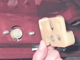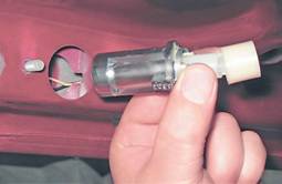4. Протолкнув личинку замка внутрь крышки багажника, вынимаем личинку вместе с дистанционной втулкой.