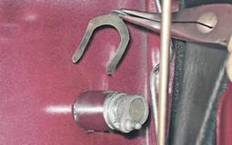 4. Плоскогубцами извлекаем из прорезей в личинке стопорную скобу.