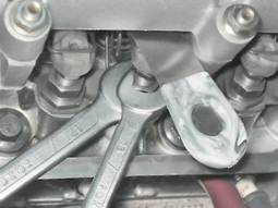 8. Вставляем щуп и ключом на 13 мм вращаем регулировочный болт, добиваясь необходимого зазора.