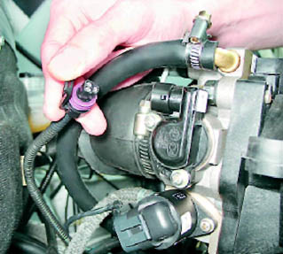 Отсоединяем колодку от датчика положения дроссельной заслонки.